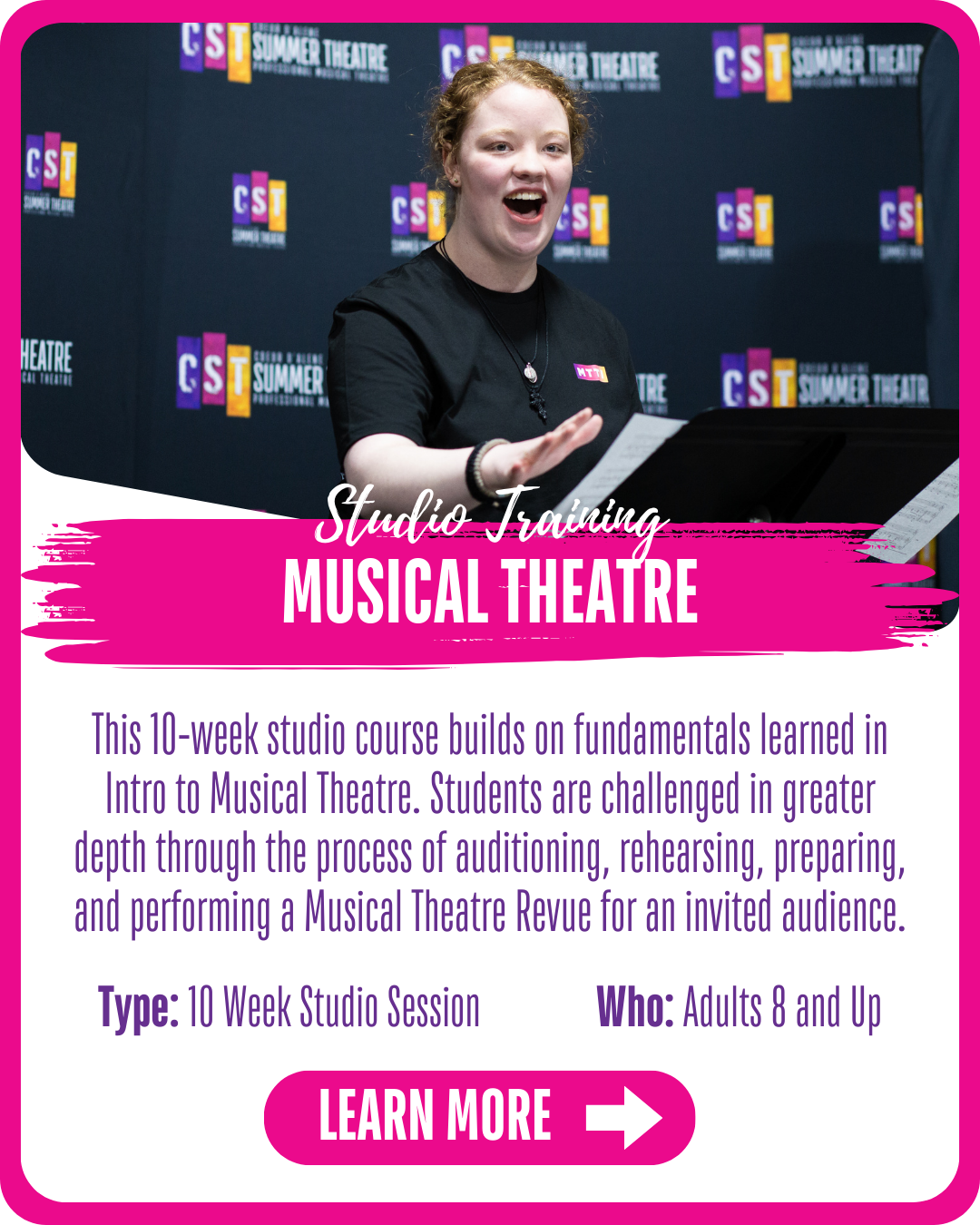 Students actively and currently enrolled in the Musical Theatre Training Institute have first access to auditions, internships, scholarships, and more with Coeur d'Alene Summer Theatre & Musical Theatre Training Institute